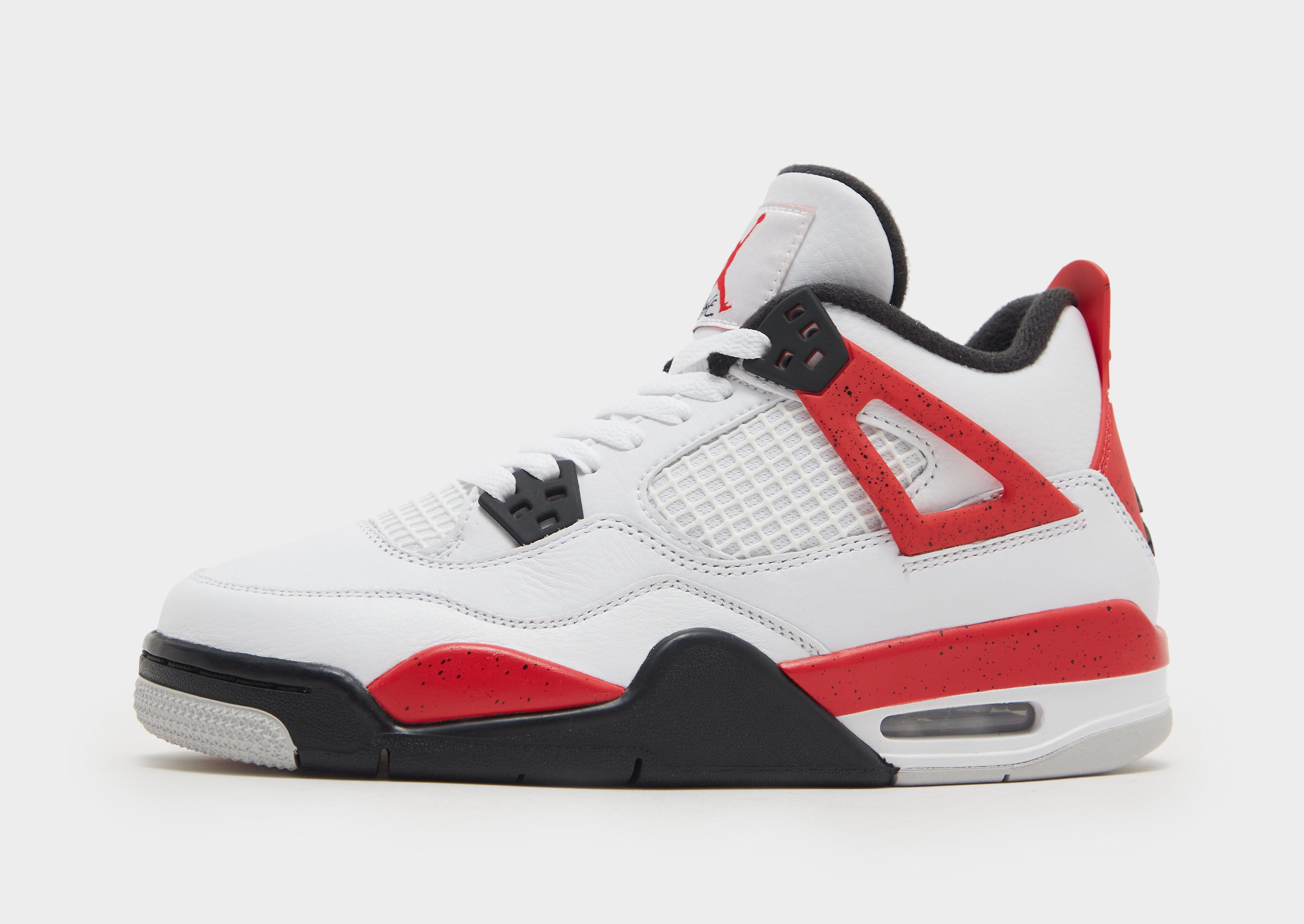 Revenez à l'original de 1989 avec ces baskets Air 4 Retro pour juniors de Jordan. Dans un coloris blanc avec des détails rouge feu et noir, ces classiques du basket-ball ont une tige en cuir et synthétique, associée à des panneaux en mesh respirant et un cadre de pied sculpté. Ils sont dotés de verrous de lacets en plastique qui vous permettent d'ajuster la largeur des lacets. Sous le pied, la semelle intercalaire en mousse est dotée d'une unité Air-Sole visible dans le talon pour un amorti exceptionnel. Avec une bande de roulement à chevrons dans la semelle extérieure en caoutchouc pour une adhérence toute la journée, ces baskets sont ornées de l'insigne emblématique Jumpman.