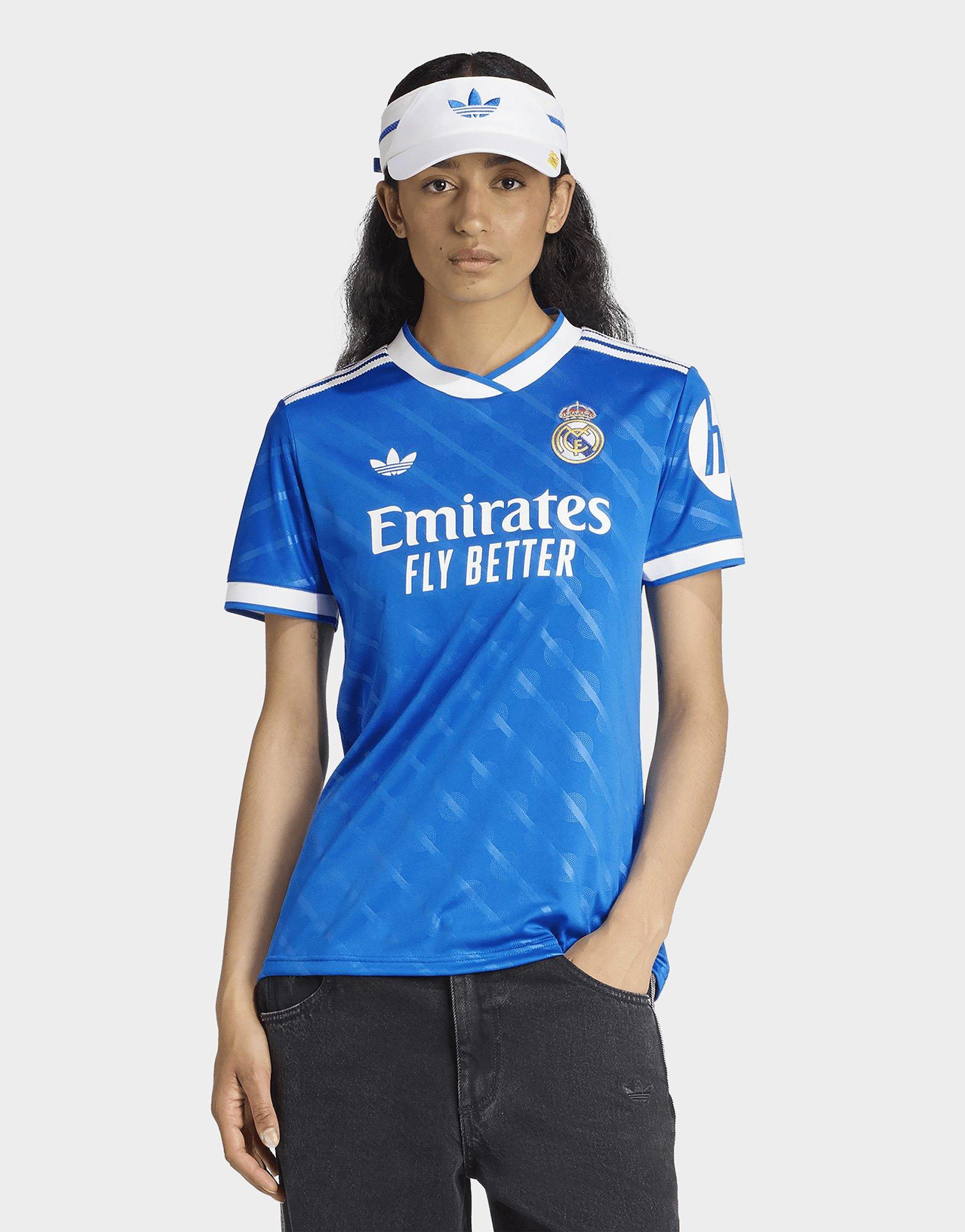 Bleu de chez bleu ! Ce maillot Third Real Madrid se décline dans une teinte chère au cœur des plus grands fans du club et des 3 bandes. Idéal pour célébrer le partenariat du siècle, le coloris classique signé adidas Originals est un clin d'œil discret à l'identité de Bernabéu. Les 3 bandes dentelées et le trèfle confèrent un héritage adidas supplémentaire. La technologie AEROREADY évacue la transpiration pour offrir un maximum de confort aux fans.