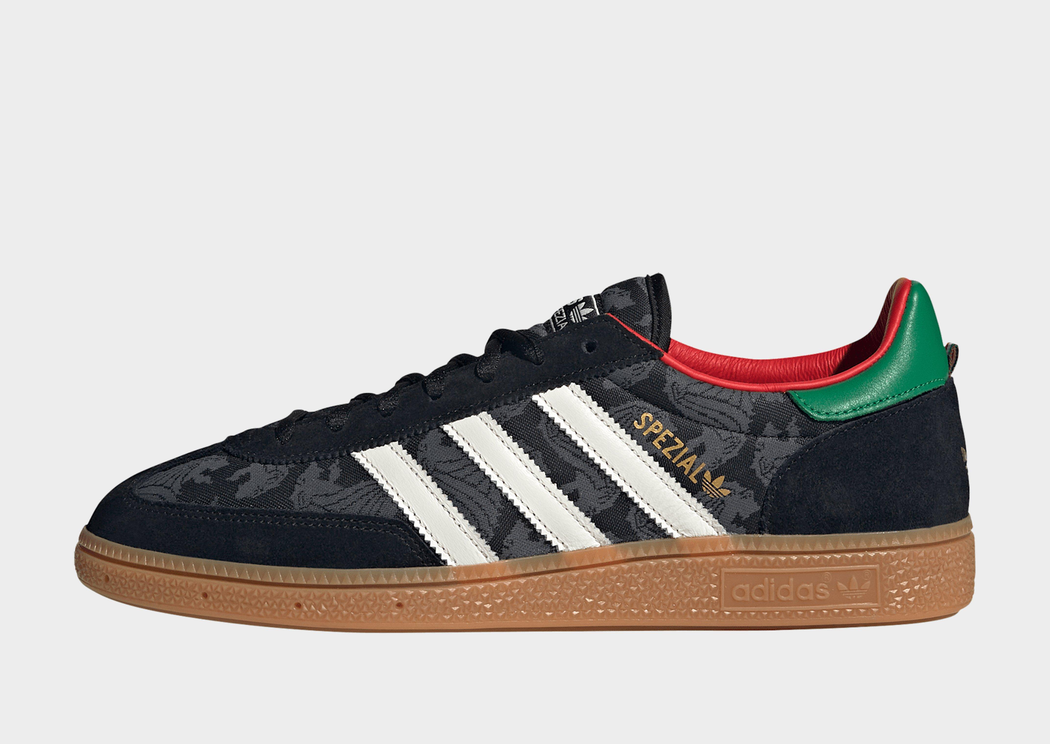 Lancée à l'origine dans les années 70 comme une chaussure de sport indoor, la chaussure Handball Spezial d'aujourd'hui est un modèle à bout en T classique intemporel. Cette dernière version, inspirée par les maillots de football rétro, présente un mélange audacieux de couleurs, de textures et de graphismes.Elle rend hommage aux maillots de football d'antan en associant un style colorblock à une utilisation créative de graphismes. Avec un quartier graphique en textile et des empiècements en suède et en cuir, une semelle de propreté graphique et une doublure en cuir souple, cette chaussure est tout en textures et en motifs.Le logo adidas Spezial sur le quartier, le talon et la languette est un clin d'œil à l'histoire qui a façonné cette chaussure. Si tu cherches un style terrace vintage avec des éléments de design distinctifs, ne cherche pas plus loin : ce favori qui a fait ses preuves est la solution.