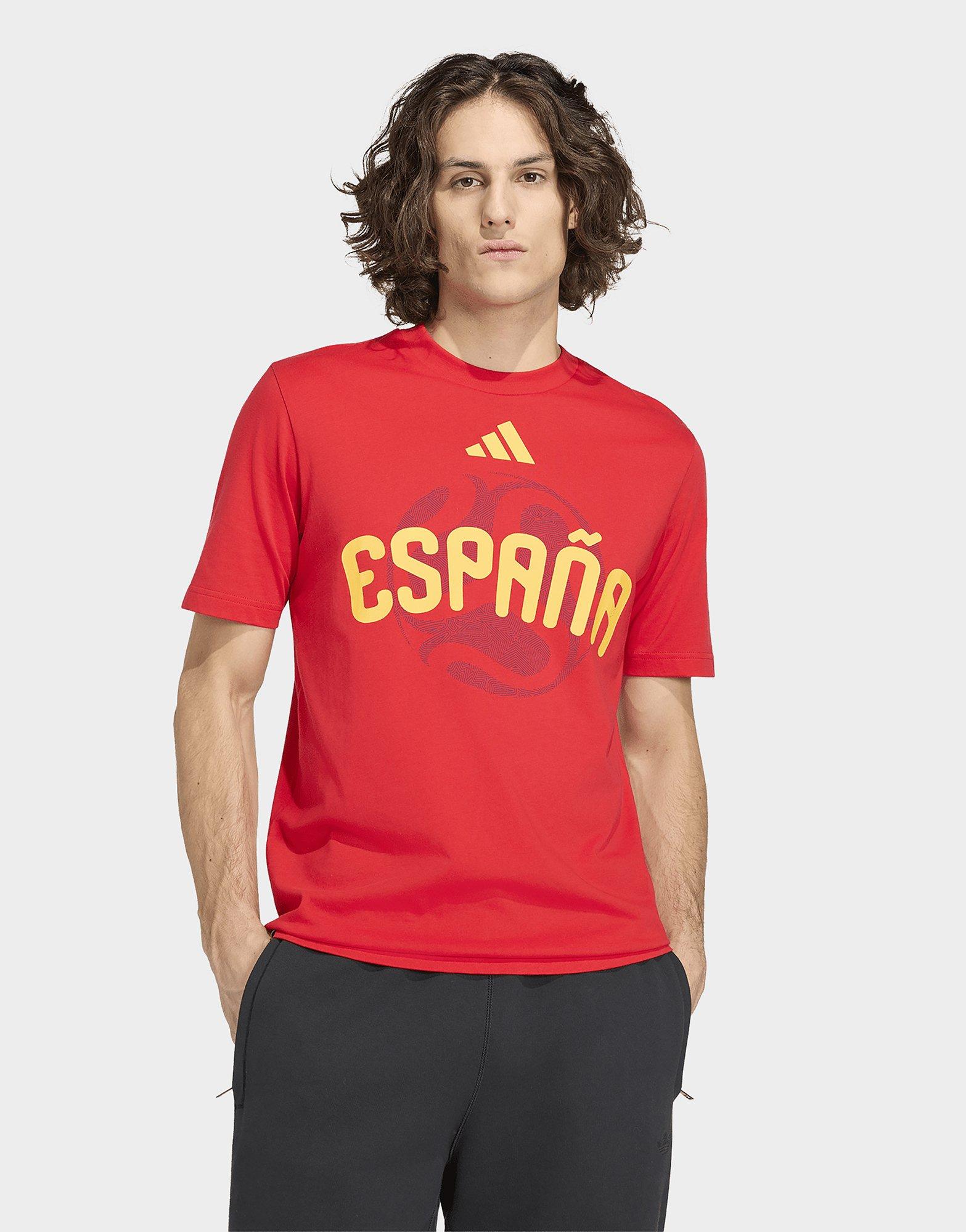 Célèbre la plus grande compétition du football avec le t-shirt Espagne Coupe du Monde de la FIFA 26™. Issu de notre collection Essentials, ce modèle a été pensé pour les fans de football, les joueurs en herbe et les amateurs de modes.Confectionné en jersey simple et agréable à porter, il présente une coupe standard, confortable et tellement agréable au quotidien. Son encolure ras-du-cou classique dessine un look intemporel, alors tu pourras le porter avec un jean, un short ou même un pantalon de jogging.Ce t-shirt stylé à manches courtes canalise l’énergie et tout le dynamisme de l’Espagne à travers ses couleurs emblématiques et ses détails inspirés du ballon rond. Tu vas adorer porter cette pièce originale, que tu sois en train d’encourager les joueurs depuis les tribunes ou de visiter une ville. Enfin, pour lui donner un petit look sporty, nous avons ajouté un logo adidas sur la poitrine.Montre ta passion et ta fierté pour l’équipe espagnole et fais partie de la communauté mondiale des fans du football avec ce t-shirt Coupe du Monde de la FIFA 26™.